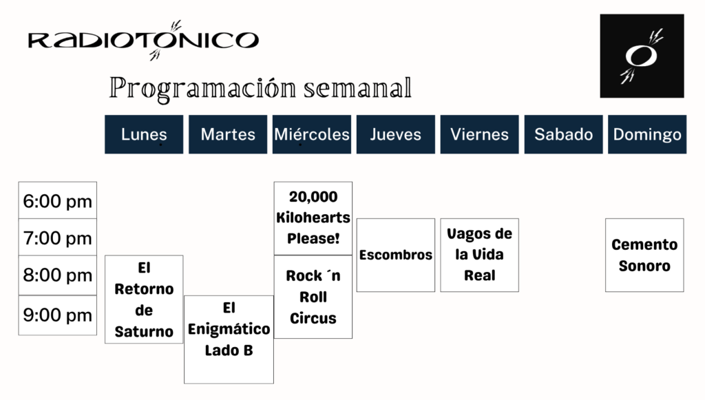 Radiotónico es una estación de radio independiente y experimental, dedicada a explorar nuevos horizontes sonoros y a desafiar las convenciones de la radiodifusión tradicional. Con una programación ecléctica que abarca desde música alternativa y underground hasta programas de arte sonoro y entrevistas.